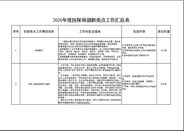 突出强核心、转作风,实施“机关效能”提升行动。以党建为引领,以发挥群团组织作用力为着力点,实施“文明机关建设行动”、“工作创新争先行动”,现共收集21条创新亮点工作,形成创新争先工作清单,建立“双周局务会”,每半个月召开一次,听取科室汇报、掌握工作进度、研究问题困难、完善思路措施,推进攻坚突破,实现医保工作“点上开花、面上推进、体上出彩”。实施“医保工作满意度提升行动”,以2019年度城乡居民评价结果及群众反映的问题为切入点,深入排查问题症结,着力破解制约医保事业高质量发展的深层次矛盾、解决人民群众反映最集中的突出问题、满足人民群众最迫切的现实需要。根据市委编办关于开展机关履职清单试点工作的要求,开展“机关履职清单试点活动”,全局18个科室根据科室职责,细化岗位职责、廉政风险点和防控措施、各项业务流程,不断推进工作有序化、规范化、制度化,形成可复制、可借鉴、可推广的履职清单。开展“合理化建议征集活动”,全局共征集意见建议71条,内容涵盖党的建设、队伍建设、医保政策等11个方面,现已明确责任科室,抓紧整改落实。通过四项行动,让全体党员干部职工真正把“有目标、尽责任、快节奏、高效率”成为工作常态,使“高标准、当先进、创一流”成为自觉追求。通过提升“机关效能”,总结提炼经验做法,让看有亮点、学有榜样、推有样板,全力打造一批“站得住、拿得出、叫得响”的医保党建品牌。